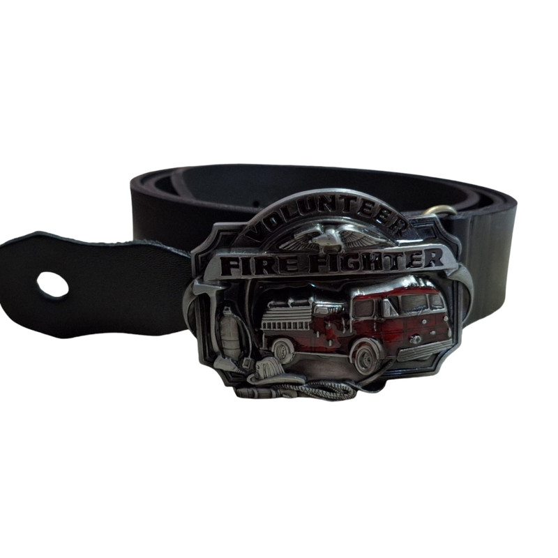 Cinturón de cuero natural hebilla de bombero