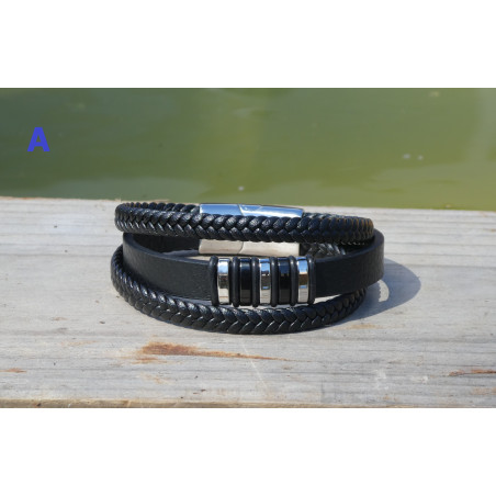 Pulsera cuero trenzada con adorno de acero inoxidable y broche imantado